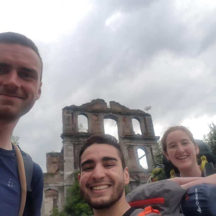 Als verfriste hoentjes dartelden we naderhand via enkele eeuwenoude religieuze ruïnes de laatste twee kilometers naar ons jeugdhostel. Liederlijk nakaartend over deze enigmatische eerste wandeldag in het enige restaurant van het dorp, zagen we onze avond ei zo na vergald worden door een horde half verdwaalde Hollanders naast ons, maar dat was buiten Danny gerekend. Die sympathieke West-Vlaamse bakker (die wereldberoemd is als bedenker van de Florentientjes) scheurde zich los van zijn Nederlandse gezellen en entertainde ons tot sluitingstijd.