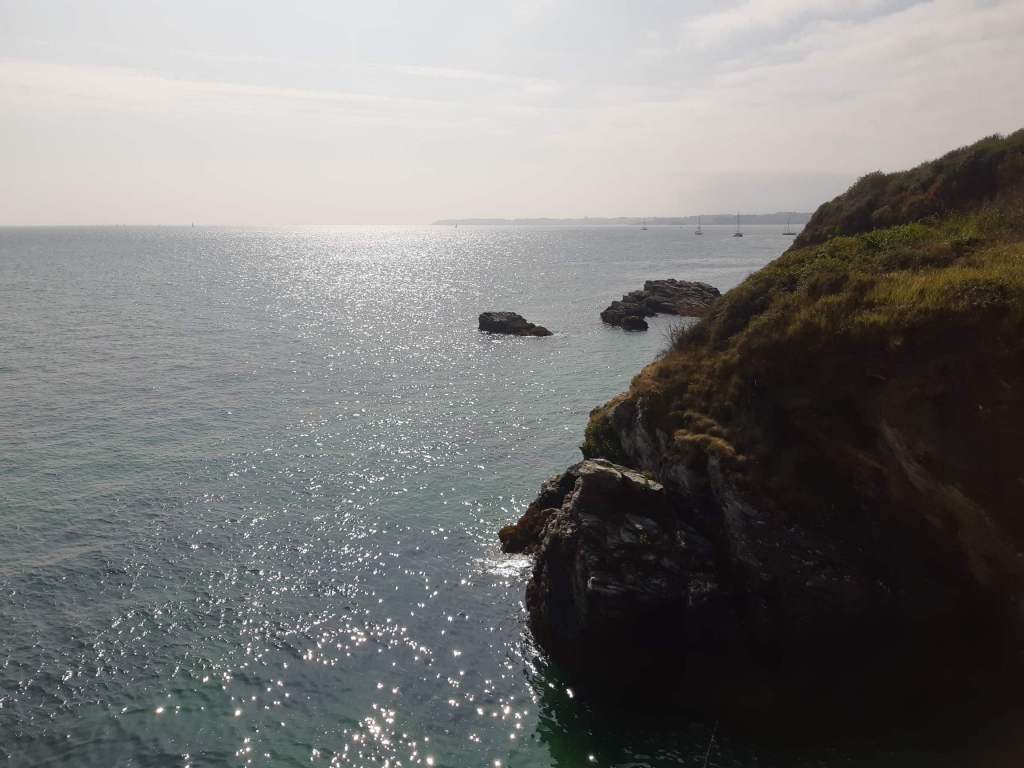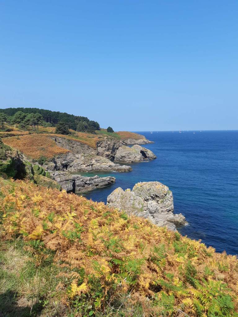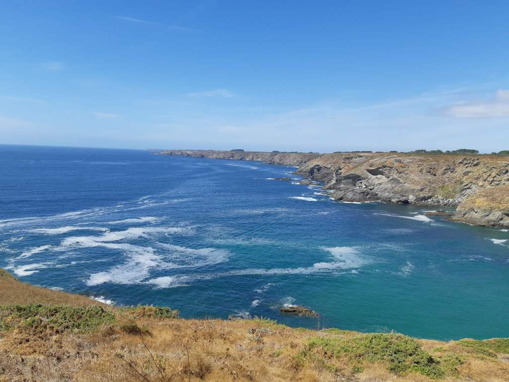 Via de naar hem genaamde chaleureuze citadel doet vestingmeester Vauban ons uitgeleide uit Le Palais. Om duidelijk te maken dat het pad voorts (gelukkig) geen stedelijke allures heeft, verschaft een Moria-achtige poort ons toegang tot het stante pede relatief ruige kustpad. De eerste panoramische aanblik is er een om van te watertanden: een minuscuul strandje dat lieflijk geprangd ligt tussen de karakteristieke, krioelende kliffen en de van azuur- tot opaalblauw transformerende oceaan. Langs zeven gelijkaardige, maar toch totaal verschillende, diepgelegen strandinhammen dalen en klauteren we verder naar de Pointe de Taillefer, waar een ruïneus fort (dat 300 jaar geleden gebouwd werd door Vauban – uiteraard – en tachtig jaar geleden dienst deed als Duitse Atlantikwall-defensie) zich tot exploratie leent.