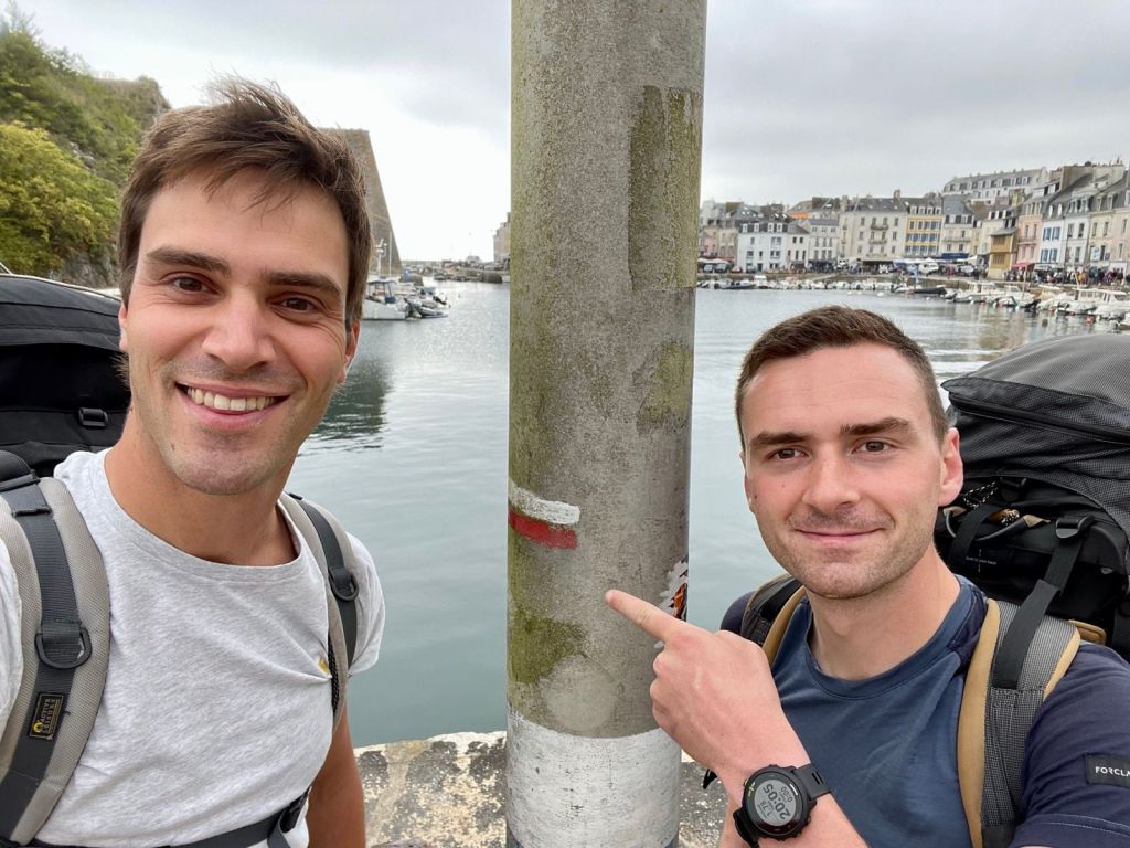 Voor ik samen met mijn weergaloze wandelkameraad Lukas die wondermooie wit-rode weg kon inslaan, hadden we eerst nog een autorit van acht uur voor de boeg. Via de prachtig hellende Pont de Normandie (die over de in het Kanaal uitmondende Seine loopt) en de eufemistisch genaamde reposplaats Aire du Mont Saint-Michel (van waaruit het getijdeneiland helaas allerminst zichtbaar was), komen we 750 kilometer zuidwestelijker aan op het schiereiland Quiberon.