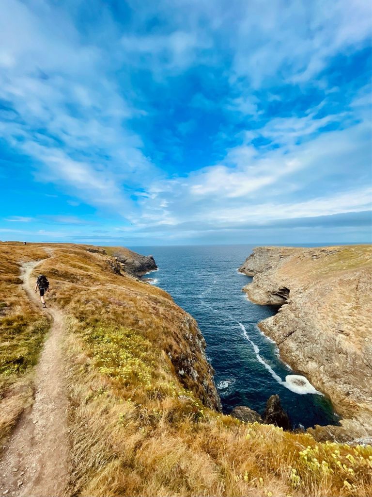 Veruit de meest technische aflopende rotswand krijgen we daarna meteen onder onze houvast zoekende voeten geschoven. In de kilometers landinwaarts lopende Port de Kérel-inham doet het GR-pad er alles aan om zo min mogelijk op een begaanbaar pad te lijken. Hemels! Ook nadien volgt een machtige mix tussen stroken waarbij we relatief rustig langs de klifwand marcheren en scènes waarbij we puffend x-aantal summa opklauteren (waarna de voldoening aan de andere kant van de baai des te bevredigender is wanneer we aanschouwen welke ogenschijnlijk loodrechte muur we zonet bedwongen hebben).