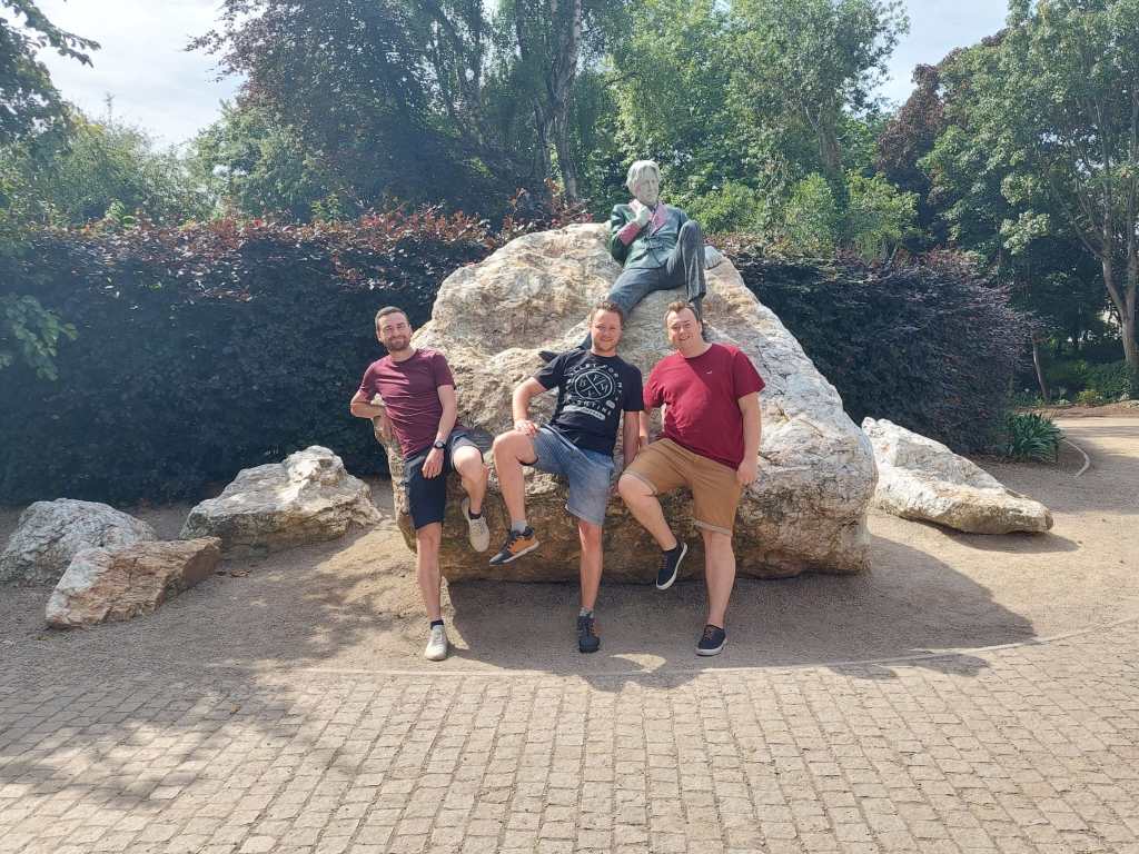 Tussen het degusteren door profiteerden we ervan om onze stappenteller al te laten warmdraaien. Tijdens onze stadstournée vergaapten we ons aan de mooie Molly Malone (“cockles and mussels!”), aan Oscar Wildes excentriek poserende evenbeeld in Merrion Square (waar we op het nippertje een ballonvaart misliepen), aan het Harry Potter-inspirerende Trinity College (met heel alerte surveillanten), aan de catacomben van Christ Church Cathedral (waar gemummificeerde en levend verklede artefacten ons verrasten) en aan een wel heel peculair 120 meter hoog naaldmonument (“All art is useless”, om Wilde te citeren). Als klap op de vuurpijl werden we ’s avonds ook nog een scenario (“You’re in!”) ingezogen en werd ik daarvoor omgetoverd tot Ken, al waren die improvisatierol en naamsverandering gelukkig van korte duur.